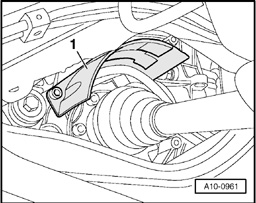 - If installed, remove bolt -1- for noise insulation cover over left and right drive axle.
