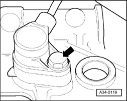 - Place drip tray for workshop crane VAS 6208 under transmission.