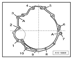- Remove bolts - 2 to 6 - at engine/transmission flange.