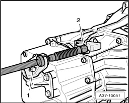 - Remove bolt -1- support bracket for selector lever cable.