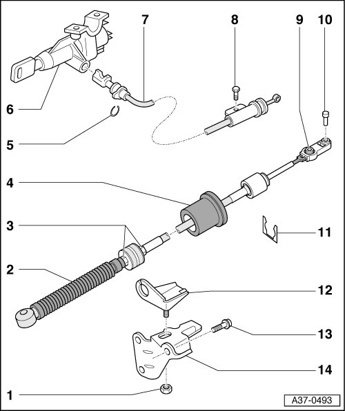 • Removing and installing, refer to => [ Selector Lever Cable ] Selector Lever Cable.