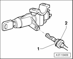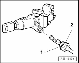 - Insert locking cable -1- into ignition/starter switch.