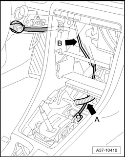 - Route locking cable without kinks under wiring harness -arrow A- and behind instrument panel brace -arrow B-.
