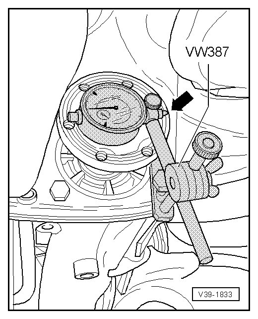 - Secure universal dial indicator holder (VW387 ) with dial indicator at rear final drive.