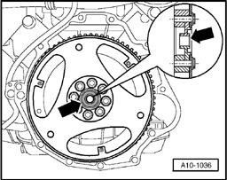 - Install drive plate with centering washer - arrow - and backing plate.