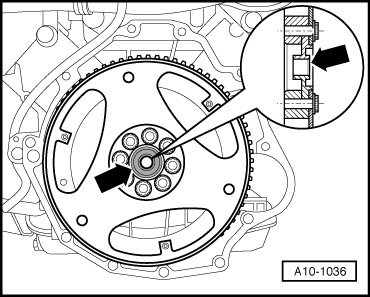 - Install drive plate with centering washer - arrow - and backing plate.