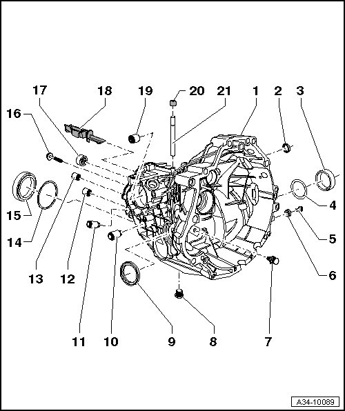 • Removing and installing, refer to => [ Removing and installing locking bushing for selector rod ] Bearing Housing