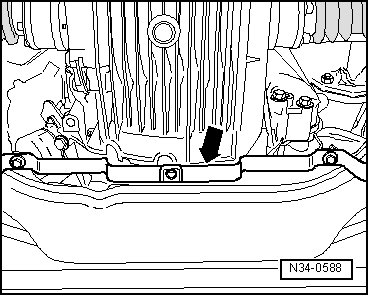 - Secure supporting elements to right side of transmission, as shown in illustration. Tighten bolt - arrow - on left side to 20 Nm.