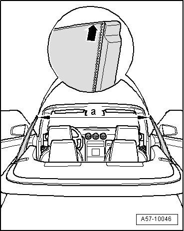 - Using a tape measure on inner edge of side windows - arrow -, measure distance of side windows to each other.