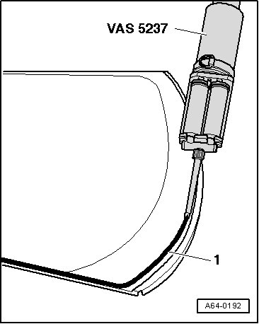 - When reusing an undamaged window, cut back smoothly residual adhesive sealing material on window and flange using electric cutter (V.A.G 1561A) and scraper (V.A.G 1561/10); do not remove completely!