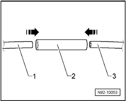 - Cut a length of EPDM hose - 2 - so that the ends of the smooth hose - 1 - and - 3 - can be pushed approximately 10 mm into the EPDM hose - 2 -.