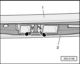 - Release retaining clips - arrows - using a screwdriver and take wiper blade - 2 - out of wiper arm - 1 - .