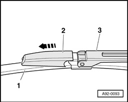 - Remove wiper blade - 1 - downwards from wiper arm.