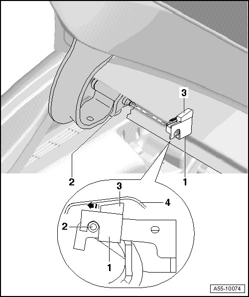 • Before installing gas-filled struts, push wedge - 3 - in - direction of arrow - until it makes contact with roof - 4 - with light pre-tension.