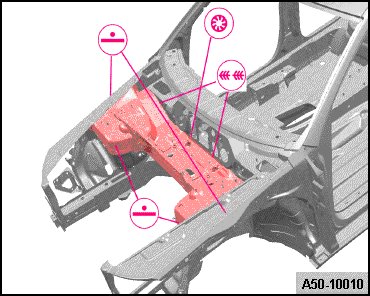 - Weld the new part with a gas-shielded arc continuous weld seam (staggered) using the gas-shielded welder 250A (VAS 6045A).
