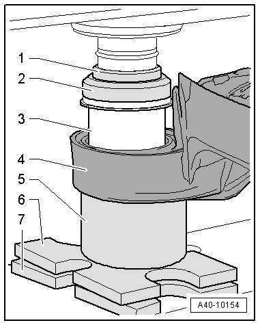 • Pressing bearings out and in is performed using (V.A.G 1290 A).