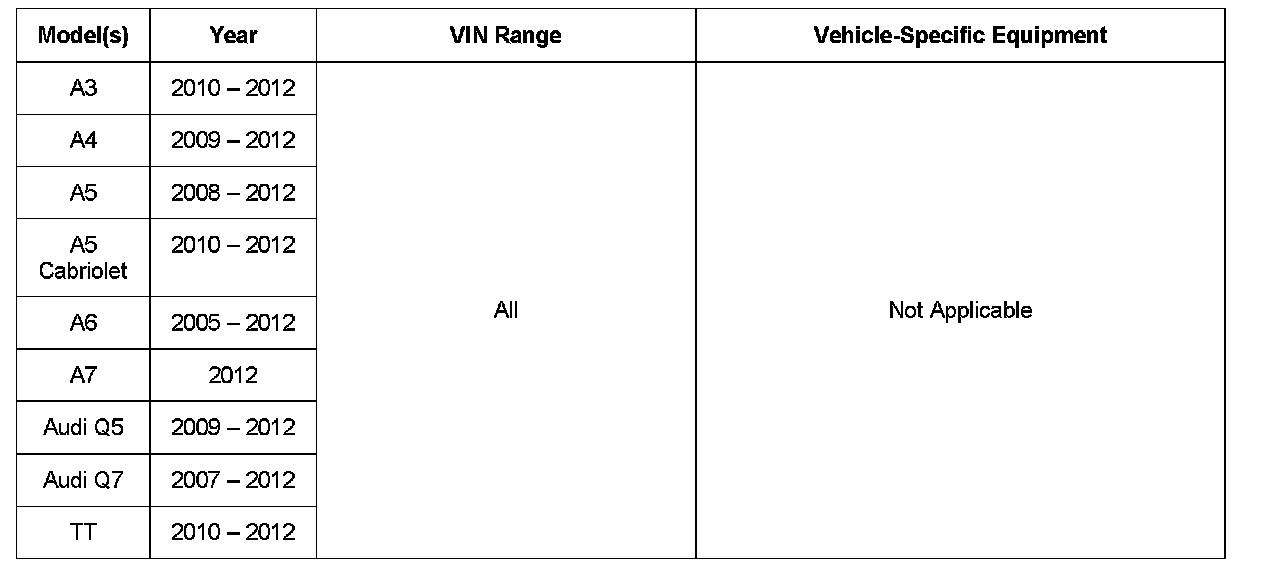 This TSB is informational only and not applicable to any Audi warranty.