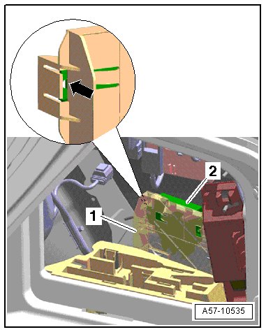 - Loosen bolts - arrow - turning toward right using socket wrench (T10010) and slide motor- 1 - out of oblong holes.
