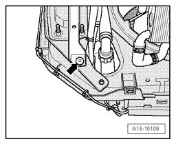 - Allow torque arm stop to make contact with rubber buffer with own weight and tighten bolts - arrow -.