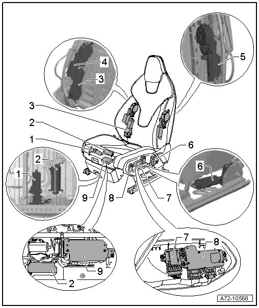 • Assembly overview, refer to => [ Front Seat Backrest Adjustment Motors Assembly Overview ]