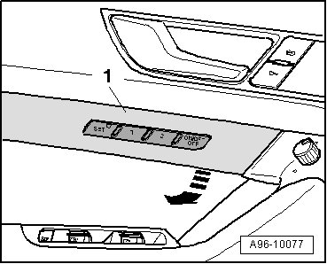- Remove front seat memory program control - 1 - from door trim.
