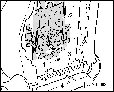 - Before securing rivet - 4 -, a plastic disk - 1 - must be placed between lumbar support - 2 - and backrest frame - 3 -.