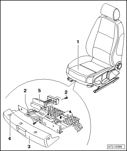 • Driver Seat Lumbar Support Curvature Adjustment Motor (V125) or (V126), removing and installing, refer to => [ Lumbar Support Adjustment Motors, New Version ]