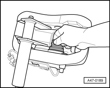 - Press the protective cap onto the brake caliper housing so that it contacts the brake caliper housing all around - arrow -.