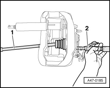 - Press in the protective cap using special tool - 1 - and - 2 -.