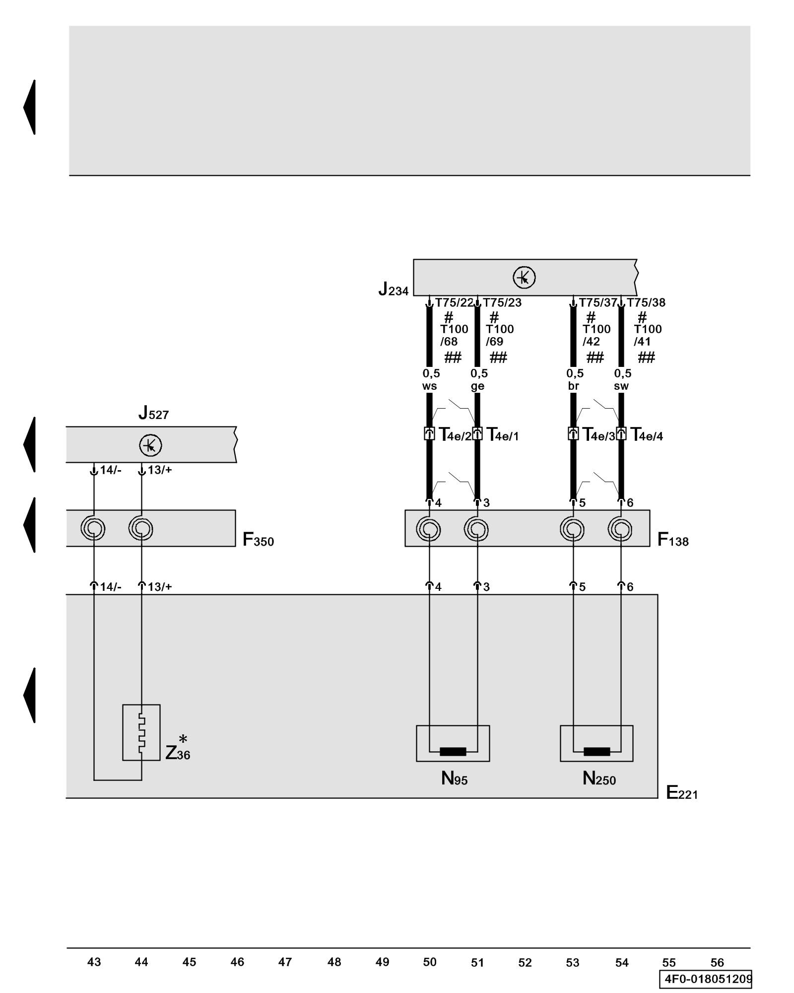 T75 - 75-Pin Connector, grey (USA white), on airbag control module