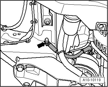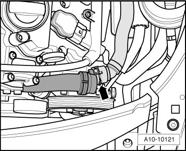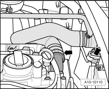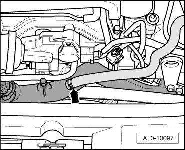 - Remove the left front coolant hose in engine compartment - arrows -.