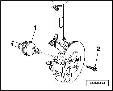 - Remove collar bolt - 2 - at left and right drive axles - 1 -.