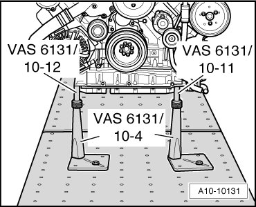 - Position support elements from (VAS 6131/10) at front on engine as shown in illustration.