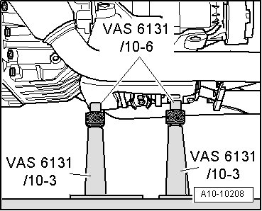 - Position support elements from (VAS 6131/10) at left and right on subframe as shown in illustration.