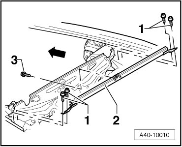- Remove the bolts - 1 - and - 3 - and then remove the dome brace - 2 -, if equipped.
