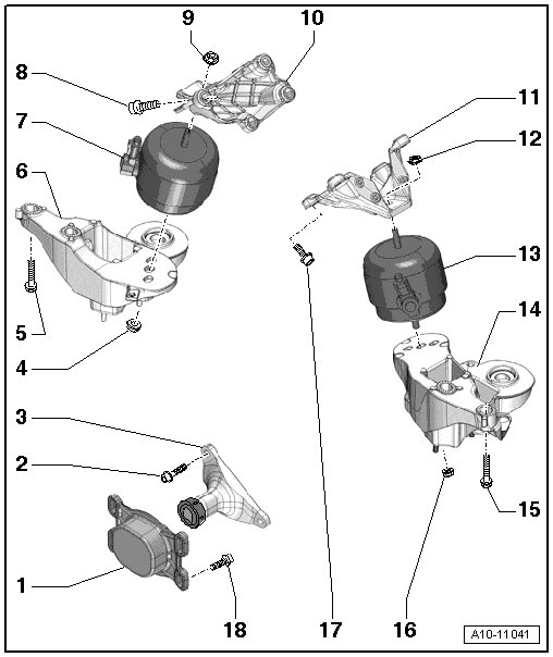 Removing and installing, refer to => [ Left Engine Mount, Removing and Installing ] Left Engine Mount, Removing and Installing