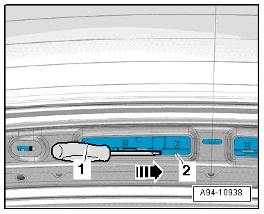 • To prevent the upper rear lid trim from breaking, it must not be colder than 20 °C (68 °F). Warm the trim slightly with a hot air gun if necessary. This applies especially to older vehicles.