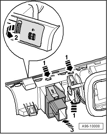 - Release clips - arrows 1 - and remove trim panel toward front - arrow 2 -.
