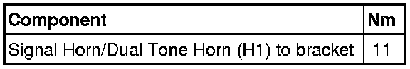 - Remove signal horn/dual tone horn (H1) - 1 - or - 4 - from bracket.