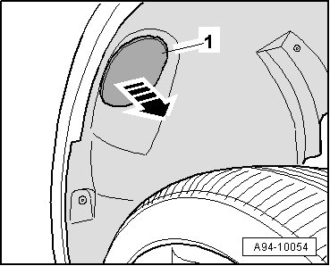 - Pry off cap - 1 - in front wheel house liner in direction of - arrow -.