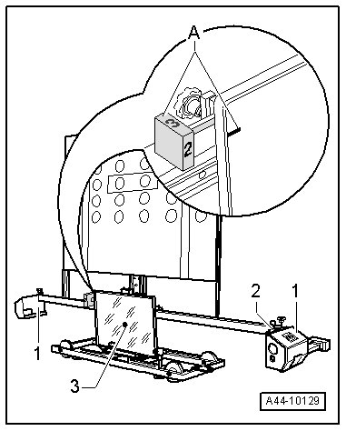 - Level the bubble levels - A - and - B - on the (VAS 6430) using the adjusting screws - 1 -, - 2 - and - 3 -.