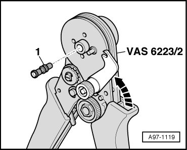- Close securing lever on (VAS 6223/2) - arrow -.