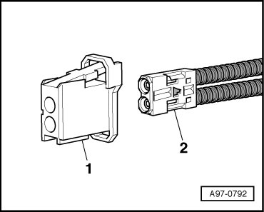 • Seal open harness connector - 2 - for fiber optic cable using protective cap for cable connector (VAS 6223/9) - item 1 -.