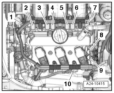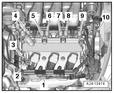 3 - Fuel injectors, cylinder bank 2 and from Fuel Pressure Sensor -G247-
