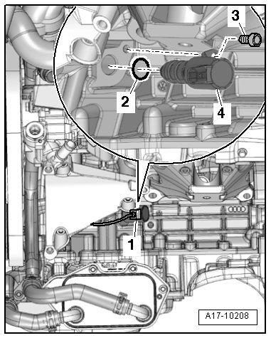 2 - Engine Speed (RPM) Sensor -G28- , bolted in transmission from below