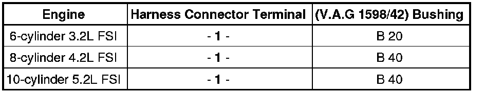 - Connect (V.A.G 1598/42) to wiring harness with (V.A.G 1598/39-1) or (V.A.G 1598/39-2). Clamp test box ground (GND) clip to battery negative terminal. The procedure will indicate whether the engine control module is to be connected to the test box or not.