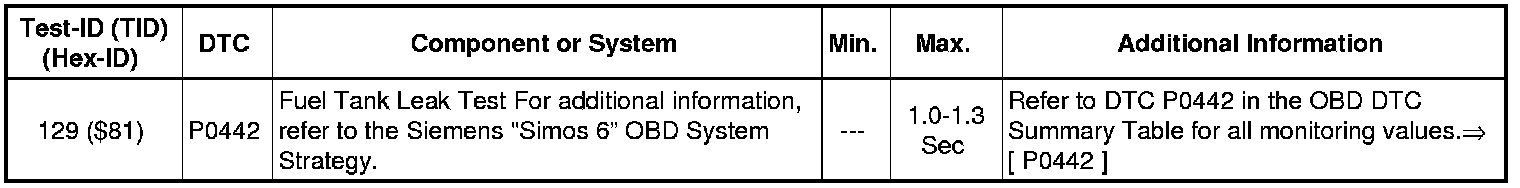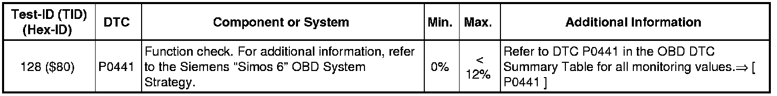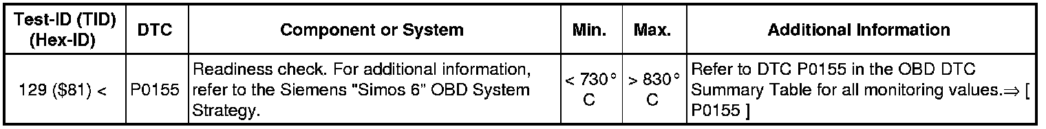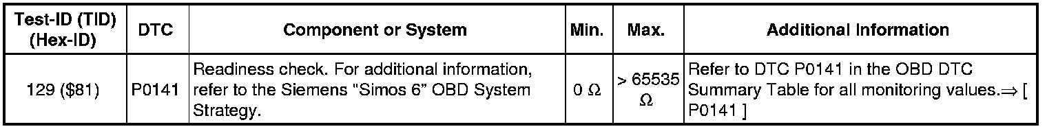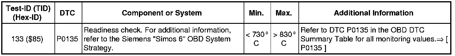 - If any component or system fails to meet the specified values, refer to => [ Diagnostic Mode 03 - Read DTC Memory ] Diagnostic Mode 03 - Read DTC Memory to check for stored DTC's or the corresponding diagnostic repair procedure.