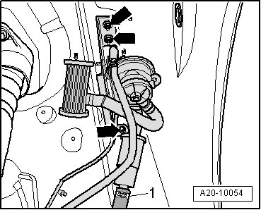 - Cut the cable ties - 1 - and disconnect the hose - 2 -.
