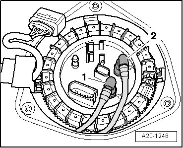 - Mark the fuel supply line - 1 - and fuel return line - 2 -.