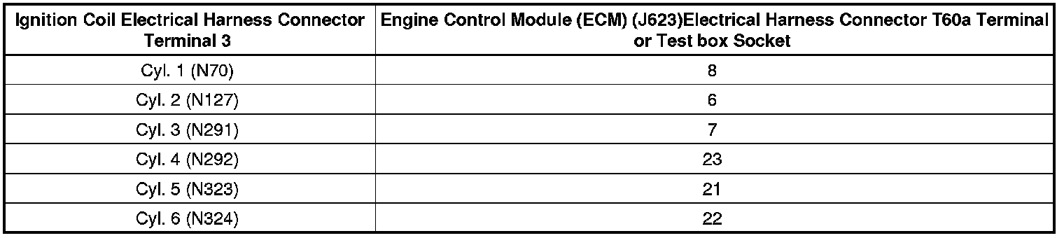 The following procedure is used to diagnose Ignition Coils with Power Output Stage (N70, N127, N291, N292, N323, N324).